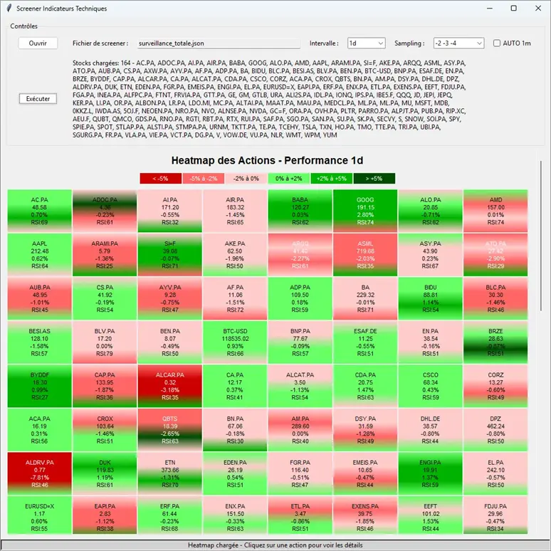 Ce screener permet une exécution rapide des indicateurs techniques sur une centaine d'actions.